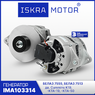 В наличии генератор бренда ISKRAMOTOR IMA103314 для техники БЕЛАЗ 7555, БЕЛАЗ 7513 с дв. Cummins K19, -KTA-19, -KTA-50  на складе Искра АЕ в Москве: