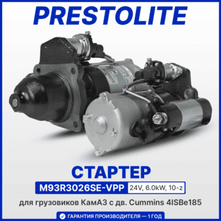 В наличии стартер бренда PRESTOLITE - M93R3026SE-VPP (24V, 6.0kW, 10-z) для КАМАЗ с дв. Cummins серии ISBe